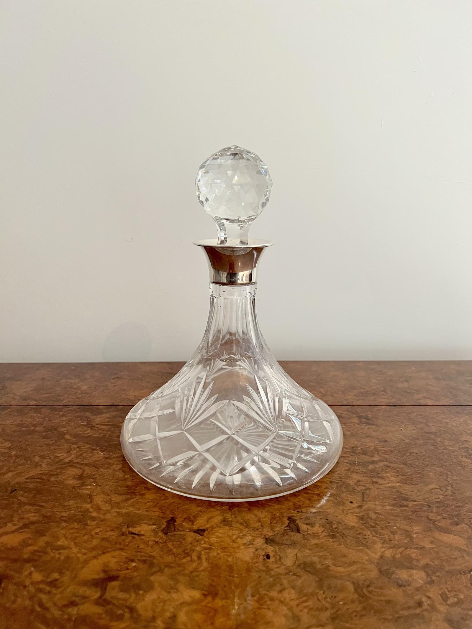 Stunning Quality Antique Edwardian Silver Collar Cut Glass Ships Decanter (1 of 5)