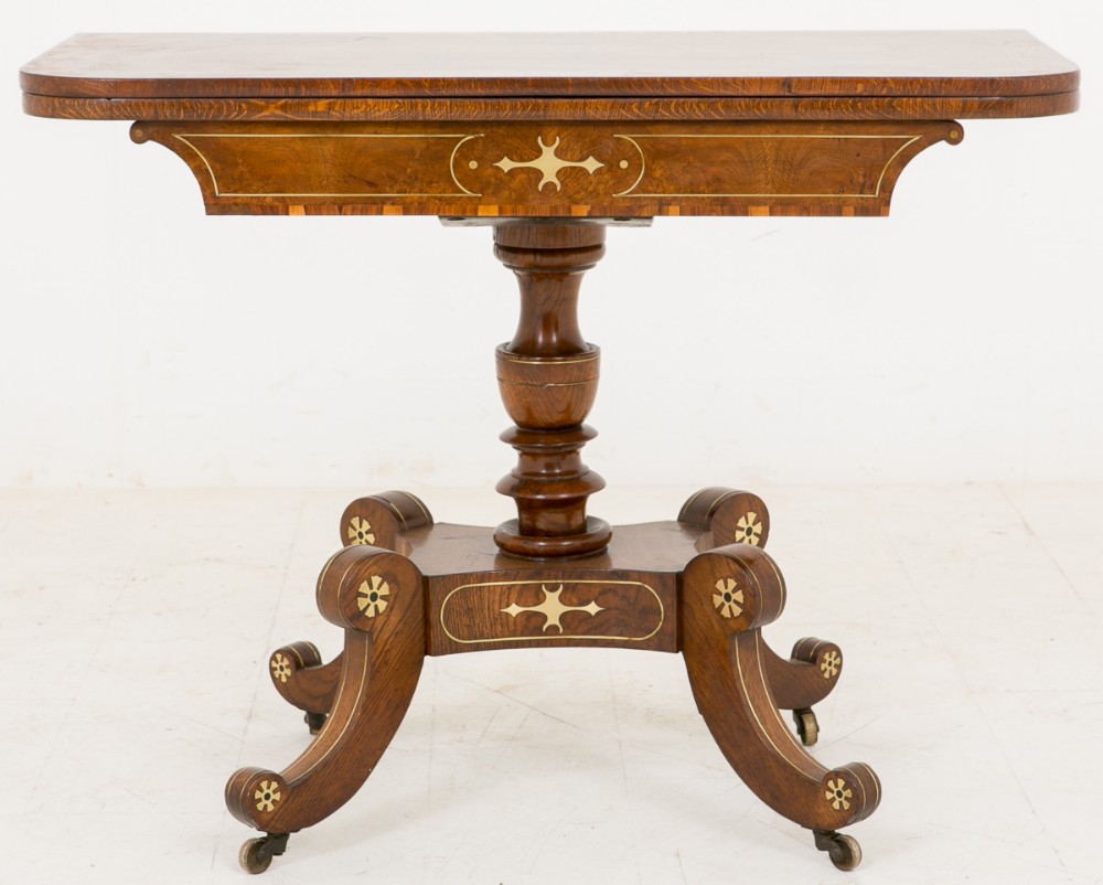 Stunning Regency Hand Cut Brass Inlaid Pollard Oak Tea Table