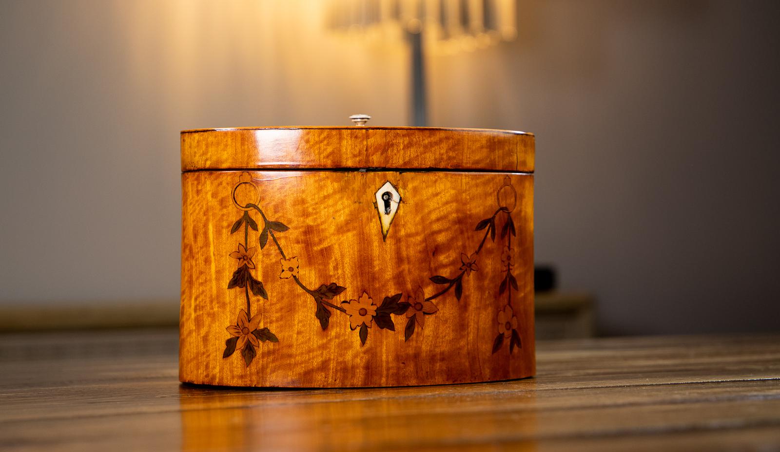 Stunning Satinwood Oval Tea Caddy c.1790 (1 of 13)