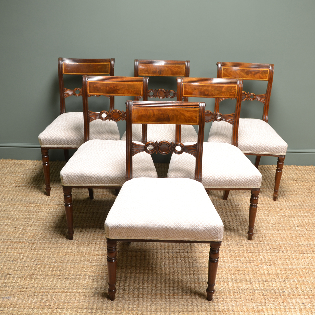 Stunning Set of Six Inlaid Mahogany Antique Dining Chairs