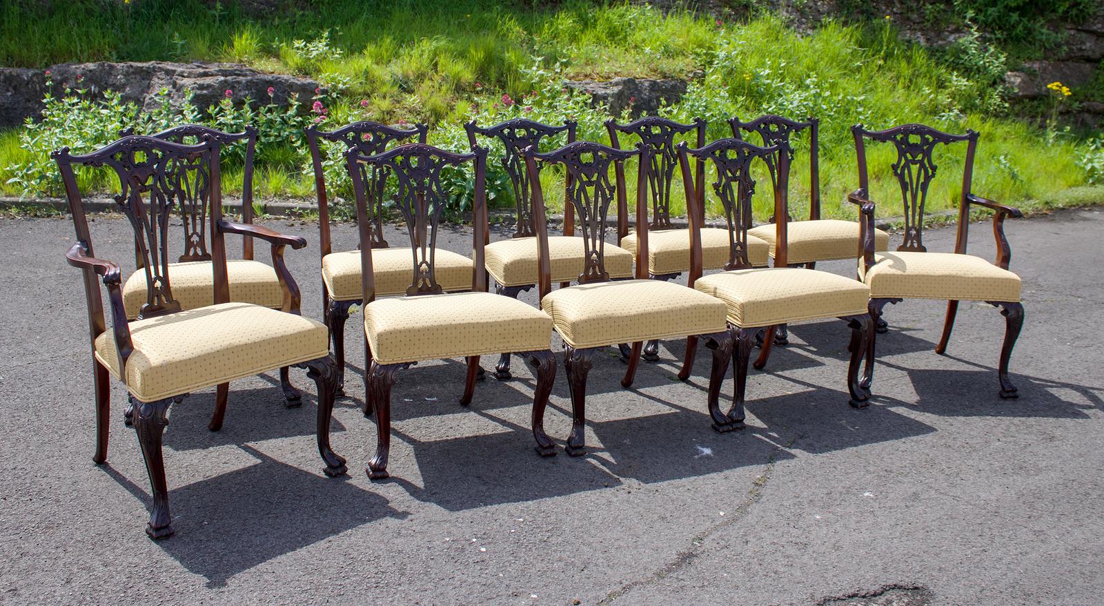 Stunning Set of Ten Carved Mahogany Chippdendale Style Dining Chairs