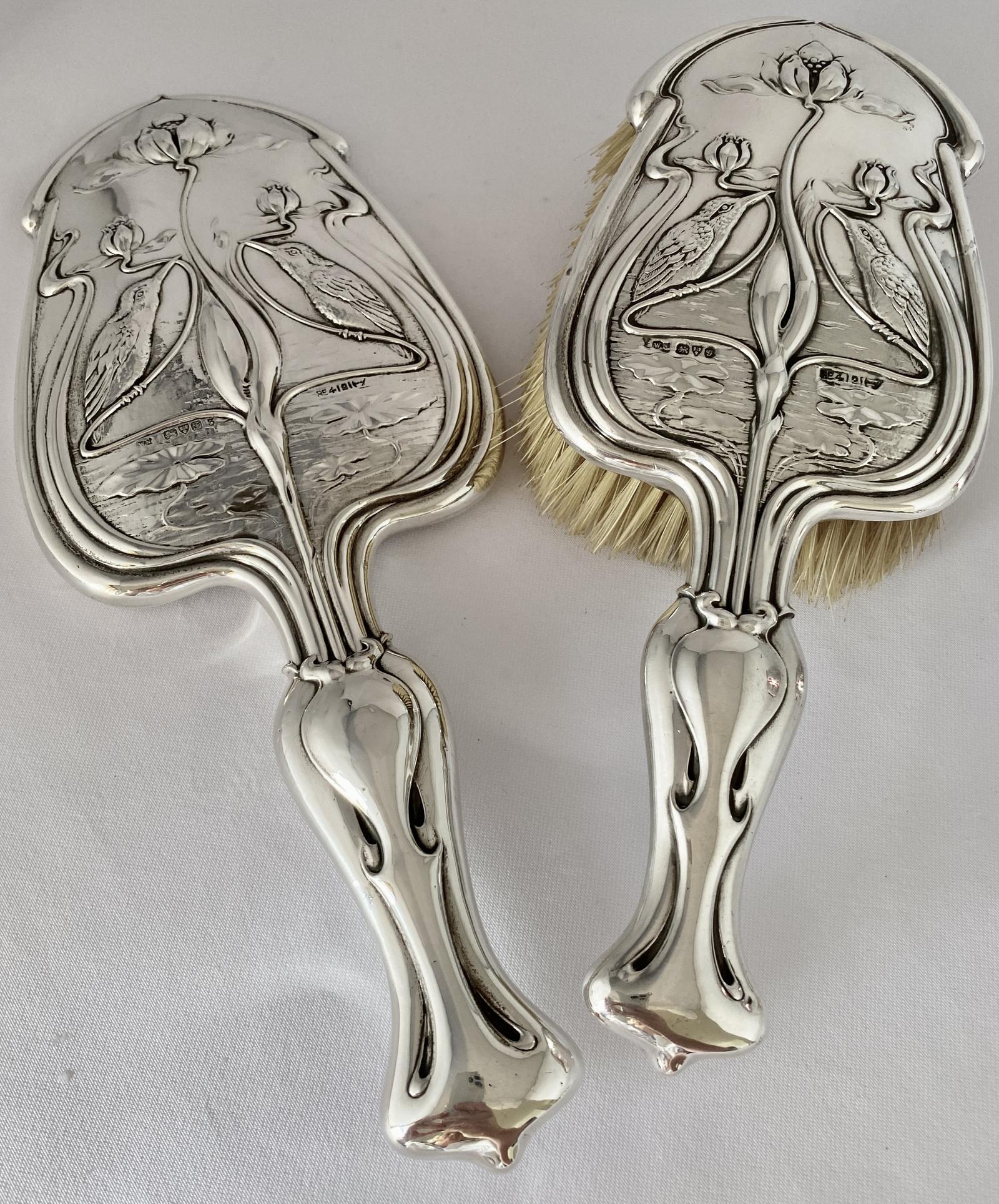 Stunning Silver Backed Hand Mirror & Brush - Chester 1906 / 1907