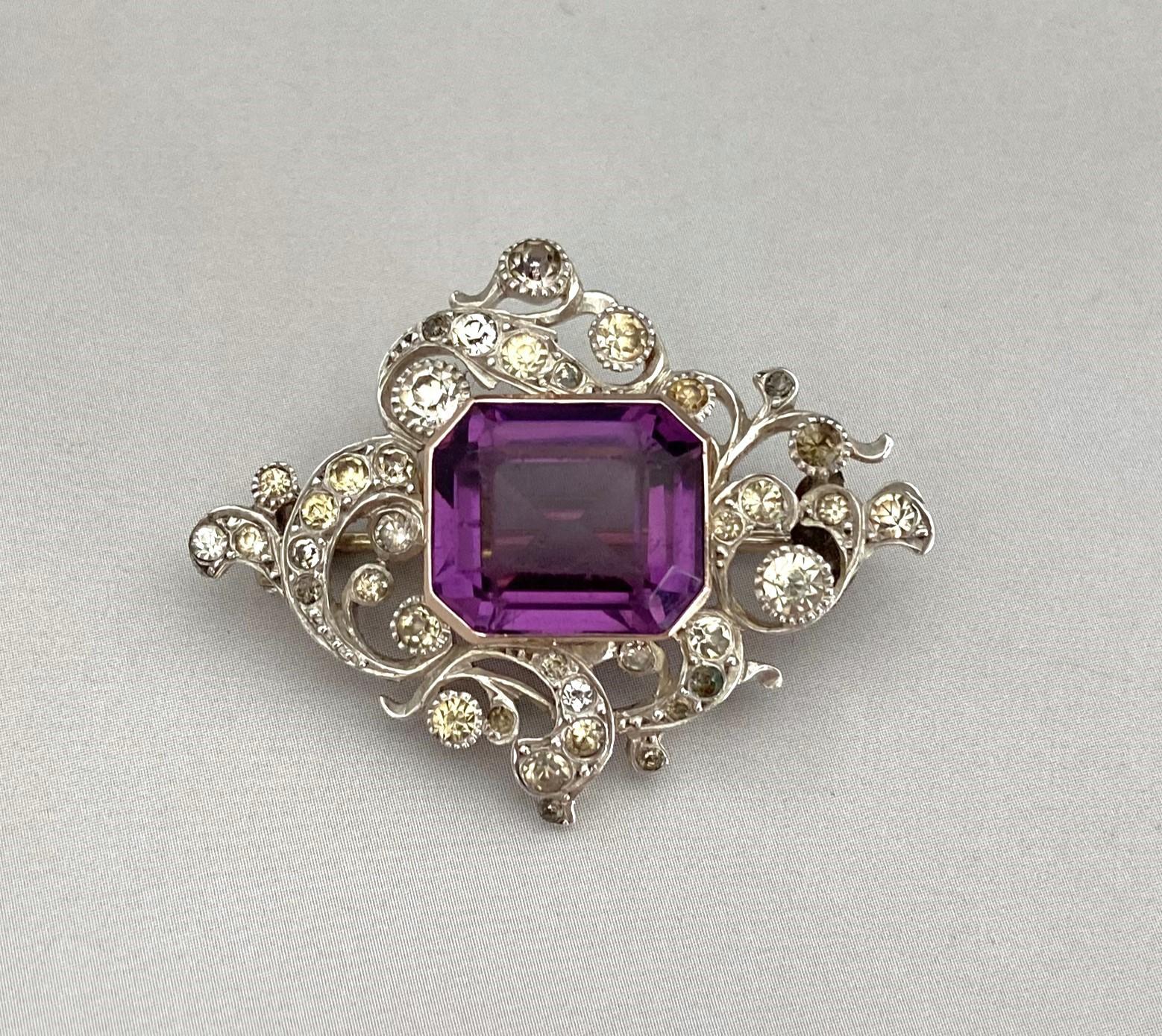 Stunning Silver Brooch Set with Gold Mounted Amethyst