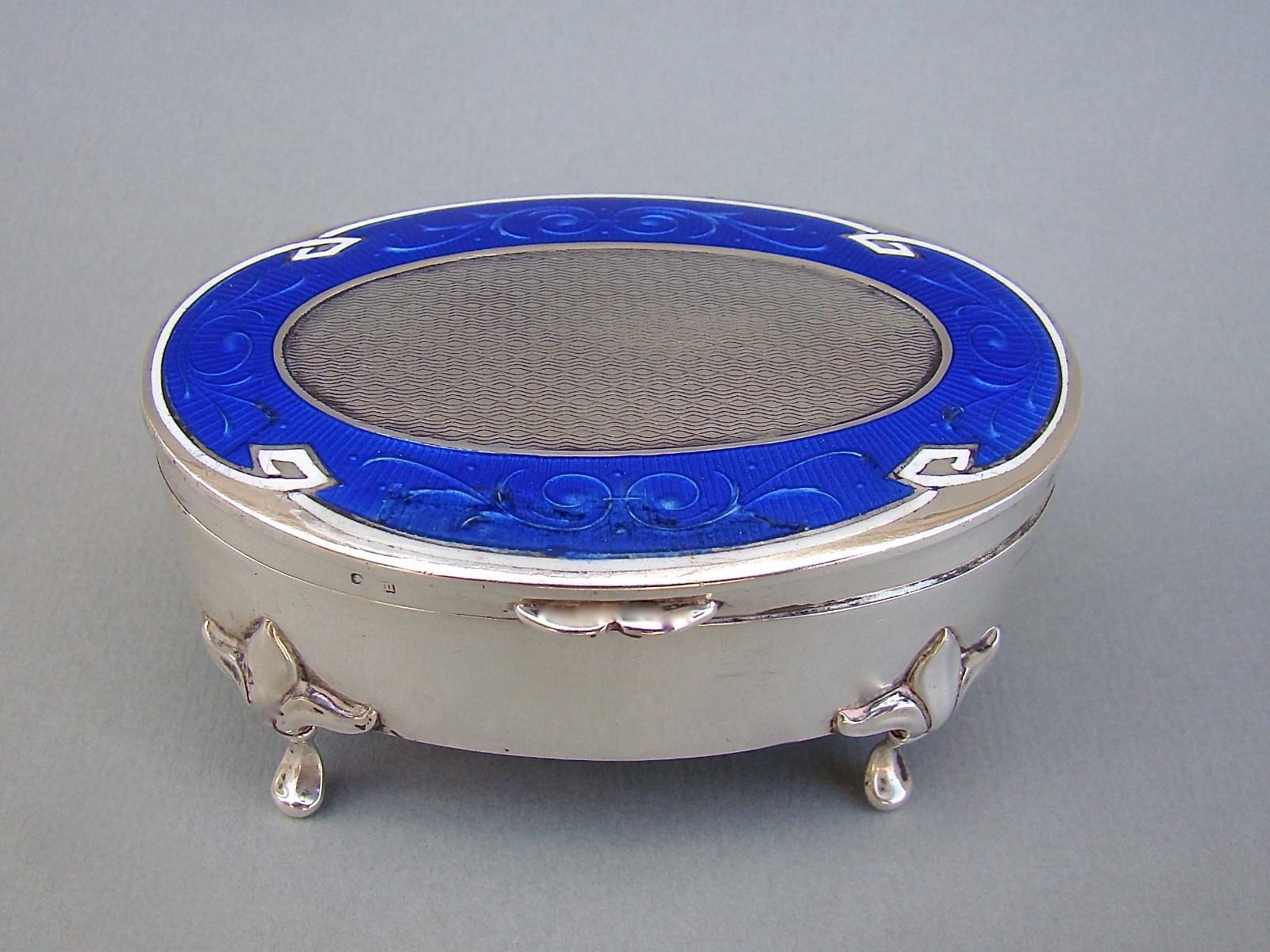 Stunning Silver & Dual Colour Guilloche Enamel Jewellery Box by Henry Matthews, Birmingham 1911