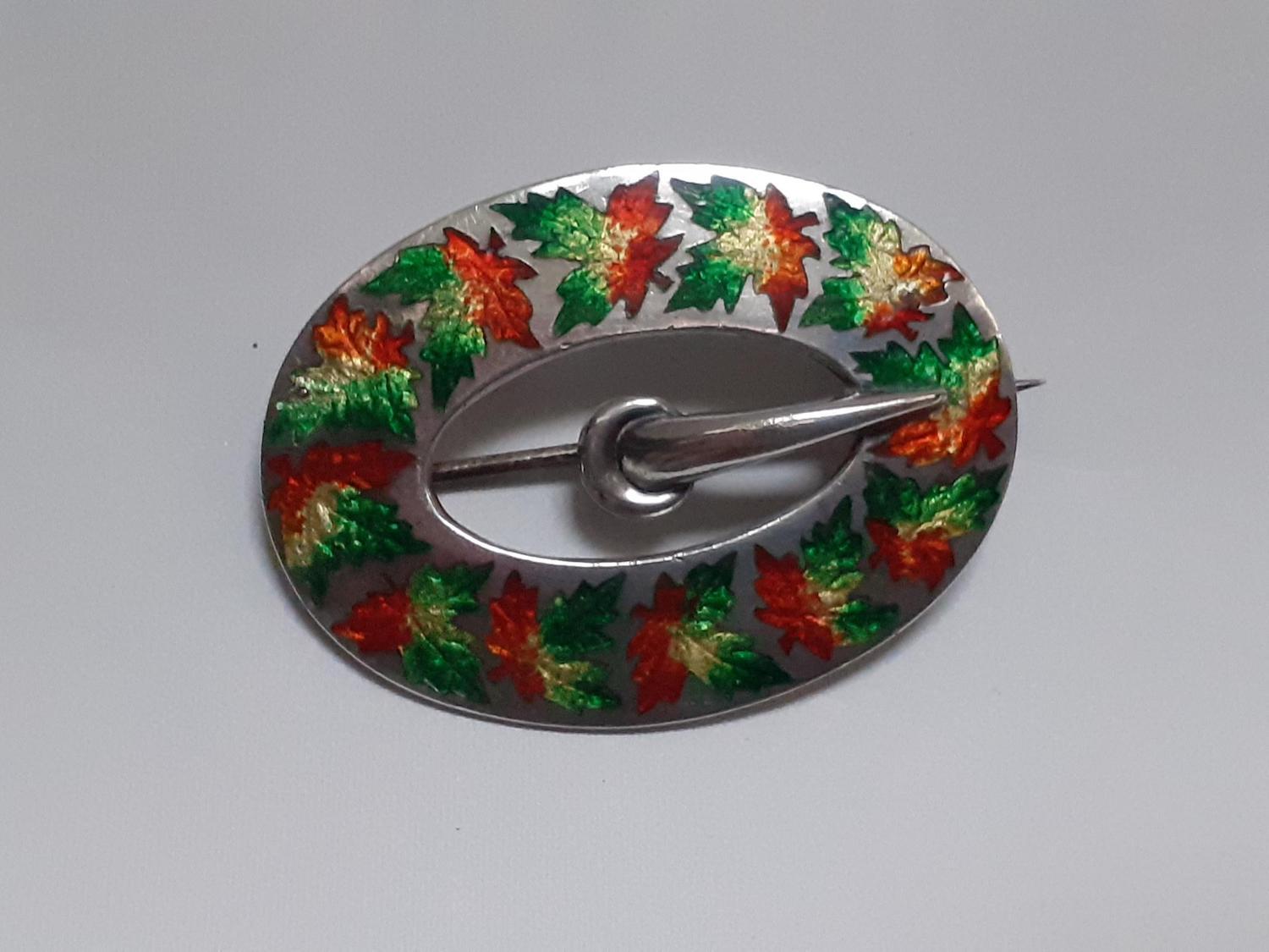 Stunning Silver & Enamel Buckle Brooch with Maple Leaves 1904 (1 of 5)