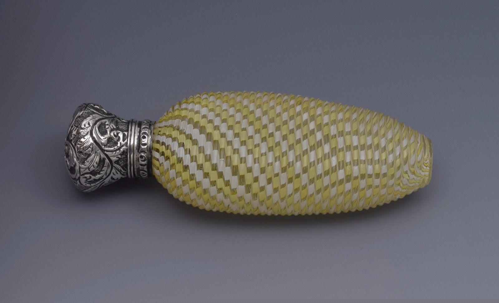 Stunning Silver Mounted Yellow & White Twisted Glass Scent Bottle (1 of 1)