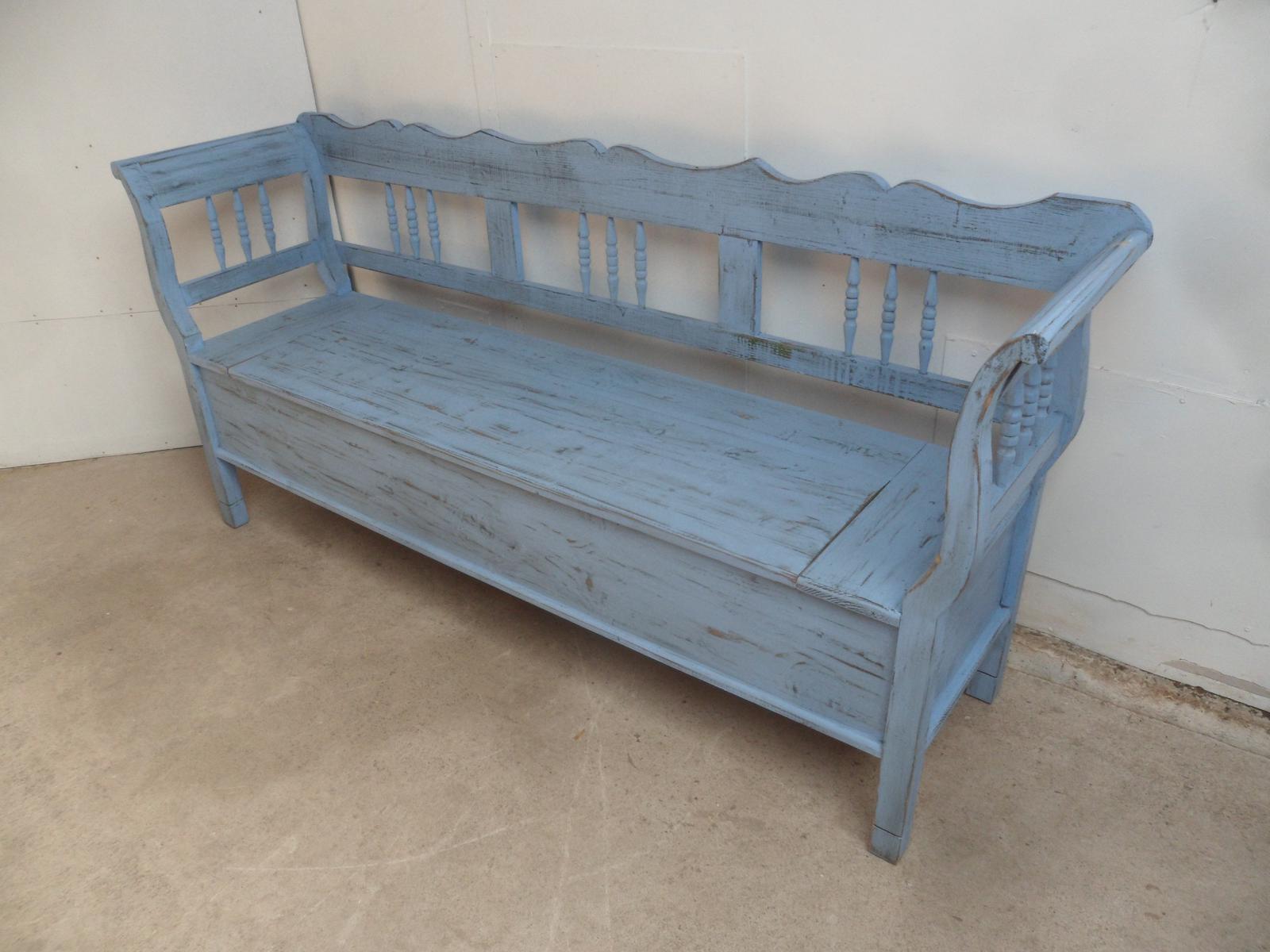 Stunning Sky Blue 3 Seater Antique Pine Kitchen / Hall Box Settle / Bench