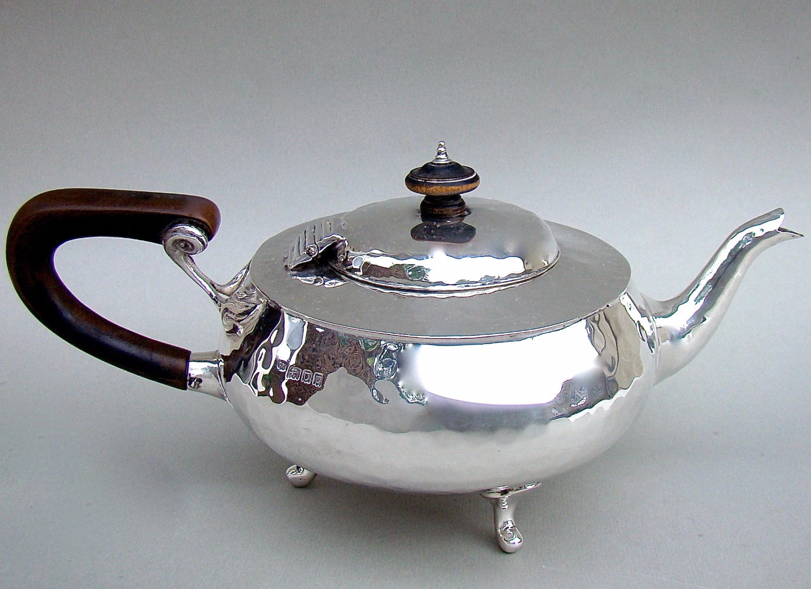 Stunning Spot-Hammered Silver Teapot by Charles Edward, London 1918