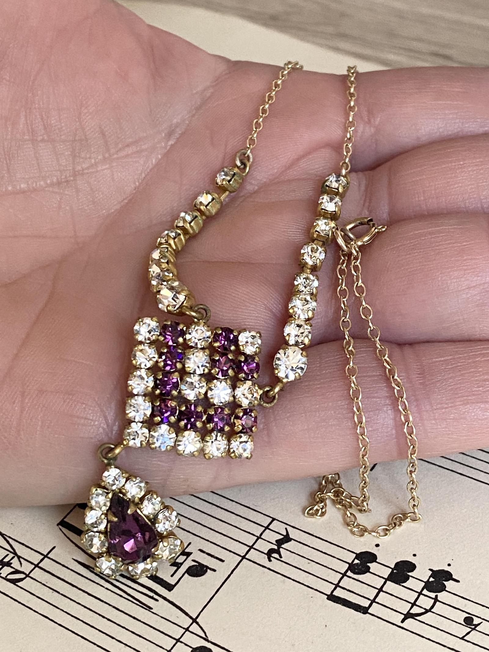Stunning Statement 9ct Gold and Rhinestone Necklace