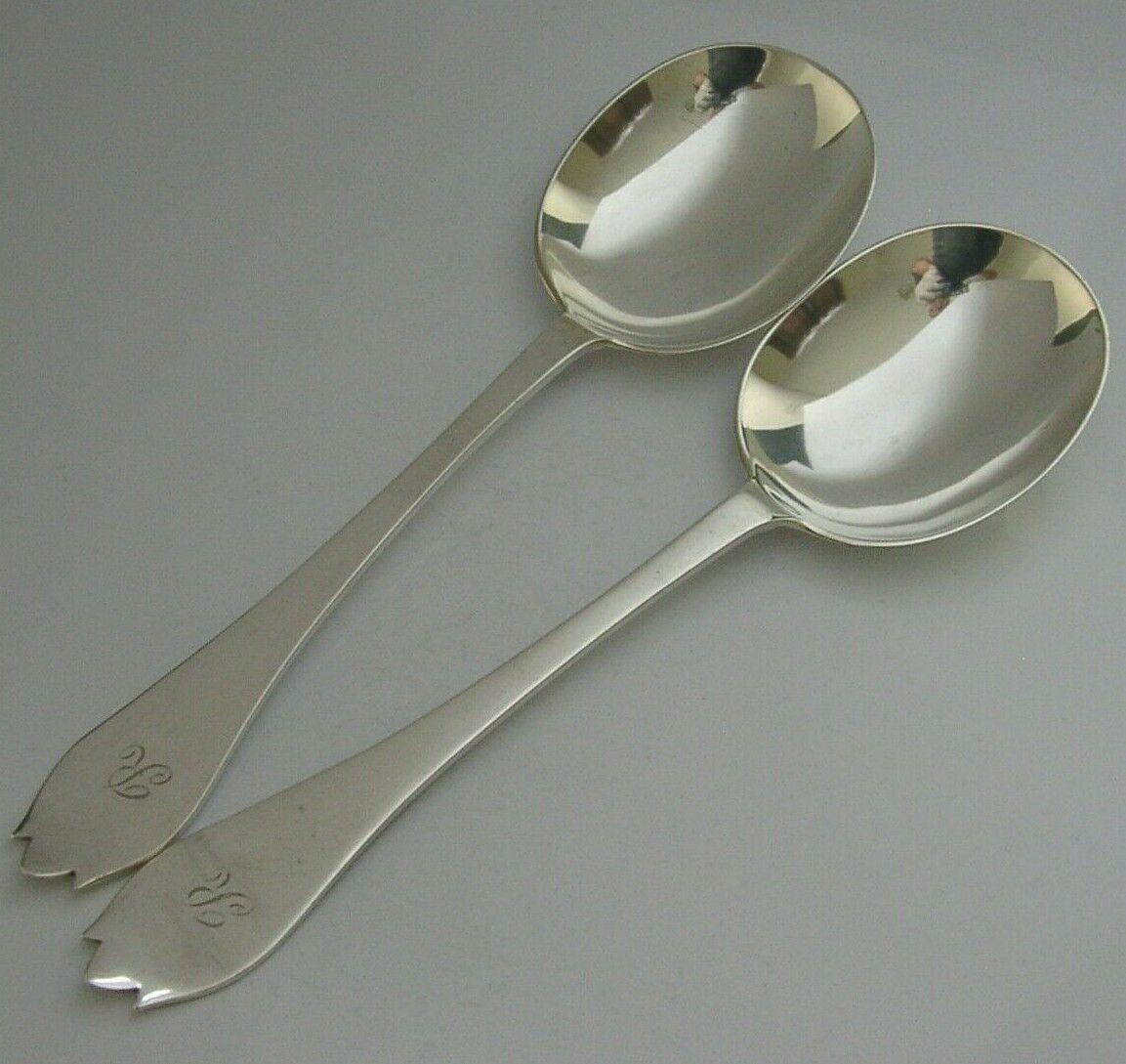 Stunning Sterling Silver Serving Spoons Rat Tail Trefid 1915 Antique