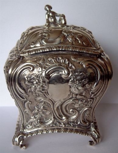 Stunning Substantial Victorian English Cast Silver Tea Caddy