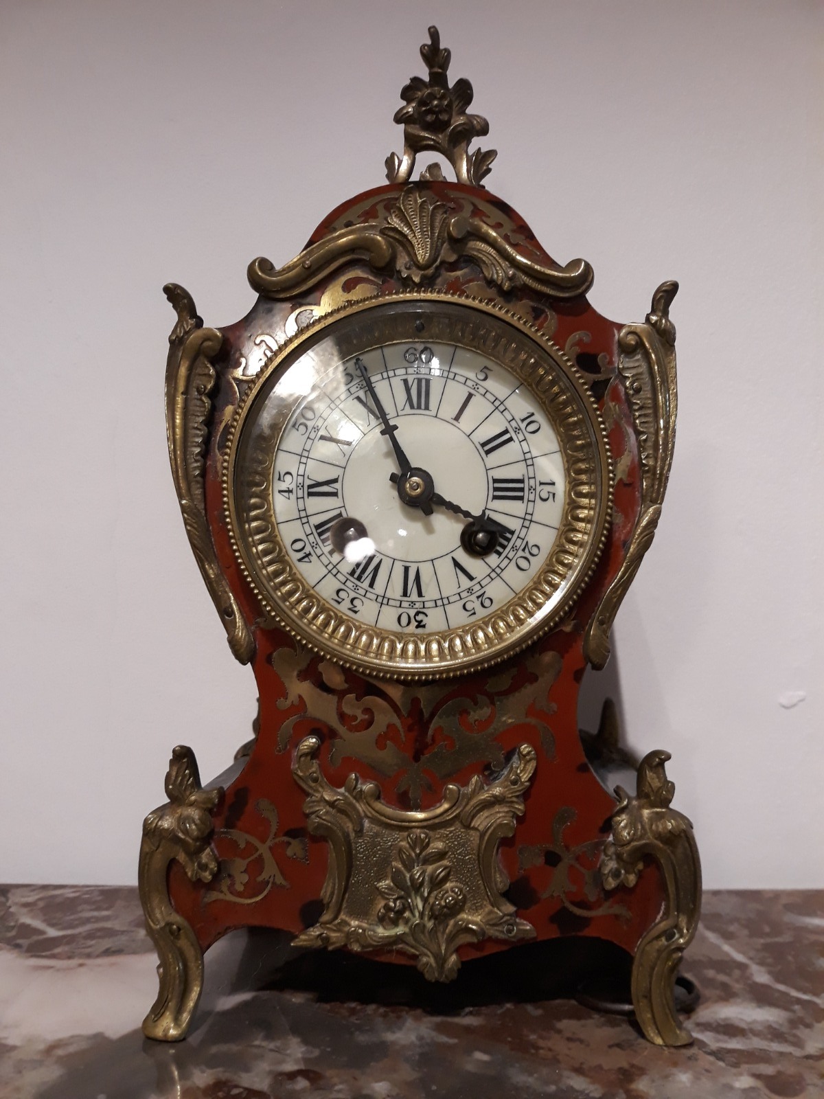 Stunning Tortoiseshell Inlaid Red Boulle Clock 19th Century French