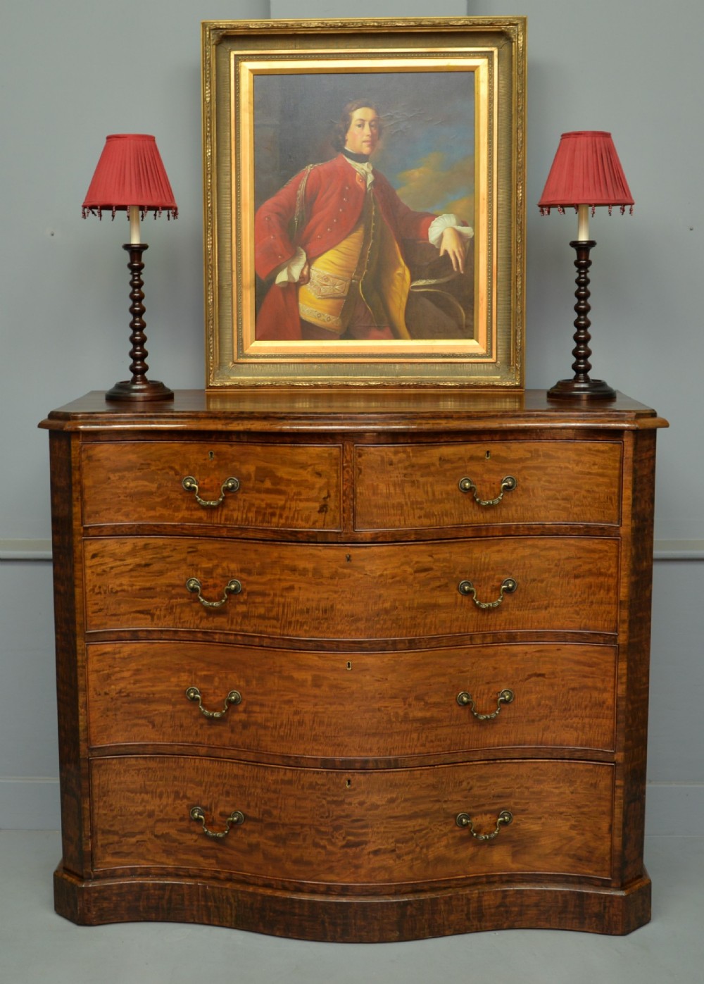 Stunning Victorian Dark Birch Serpentine Chest of Drawers