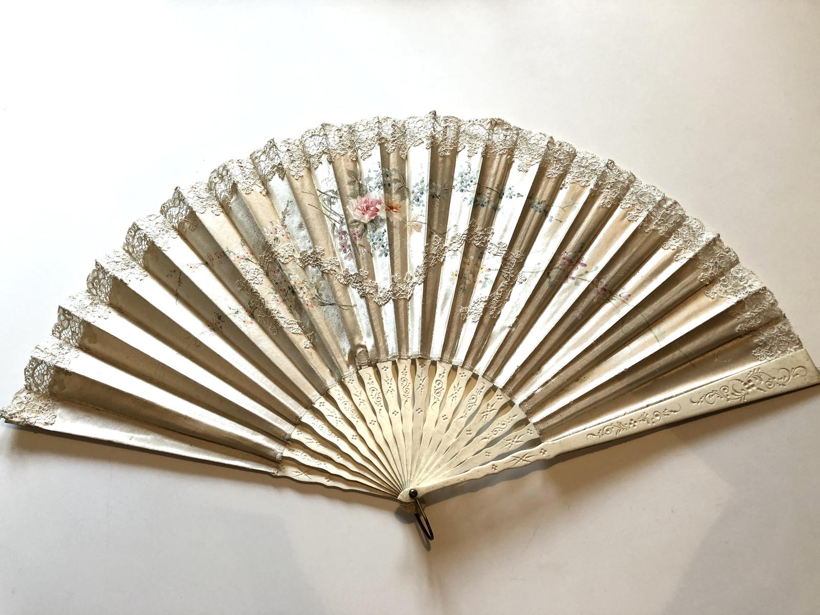 Stunning Victorian Painted Cream Silk & Lace Fan