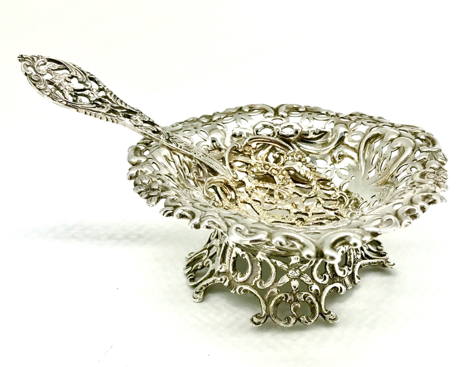 Stunning Victorian W Comyns Solid Silver Heart Shaped Dish & Matching Spoon London 1892 / 1895