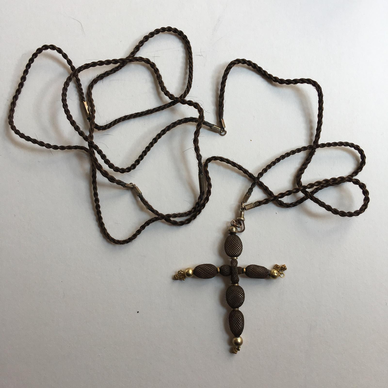 Stunning Victorian Woven Hair Cross Pendant with Plaited Hair Chain