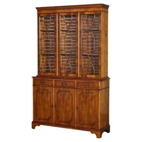 Stunning Vintage Burr Yew Wood Display Cabinet Bookcase with Keys