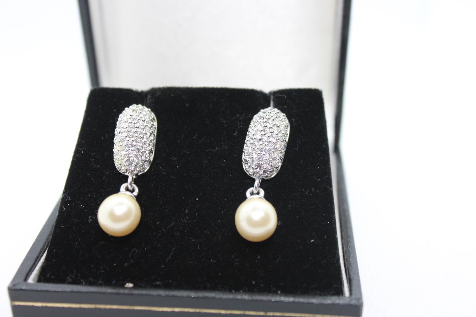 Stunning Vintage Christian Dior Silver Rhinestone Pearl Drop Earrings