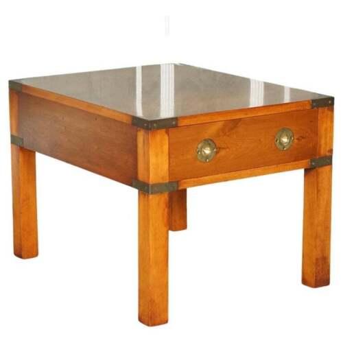 Stunning Vintage Military Campaign Yew Wood Bedside Side End Lamp Table