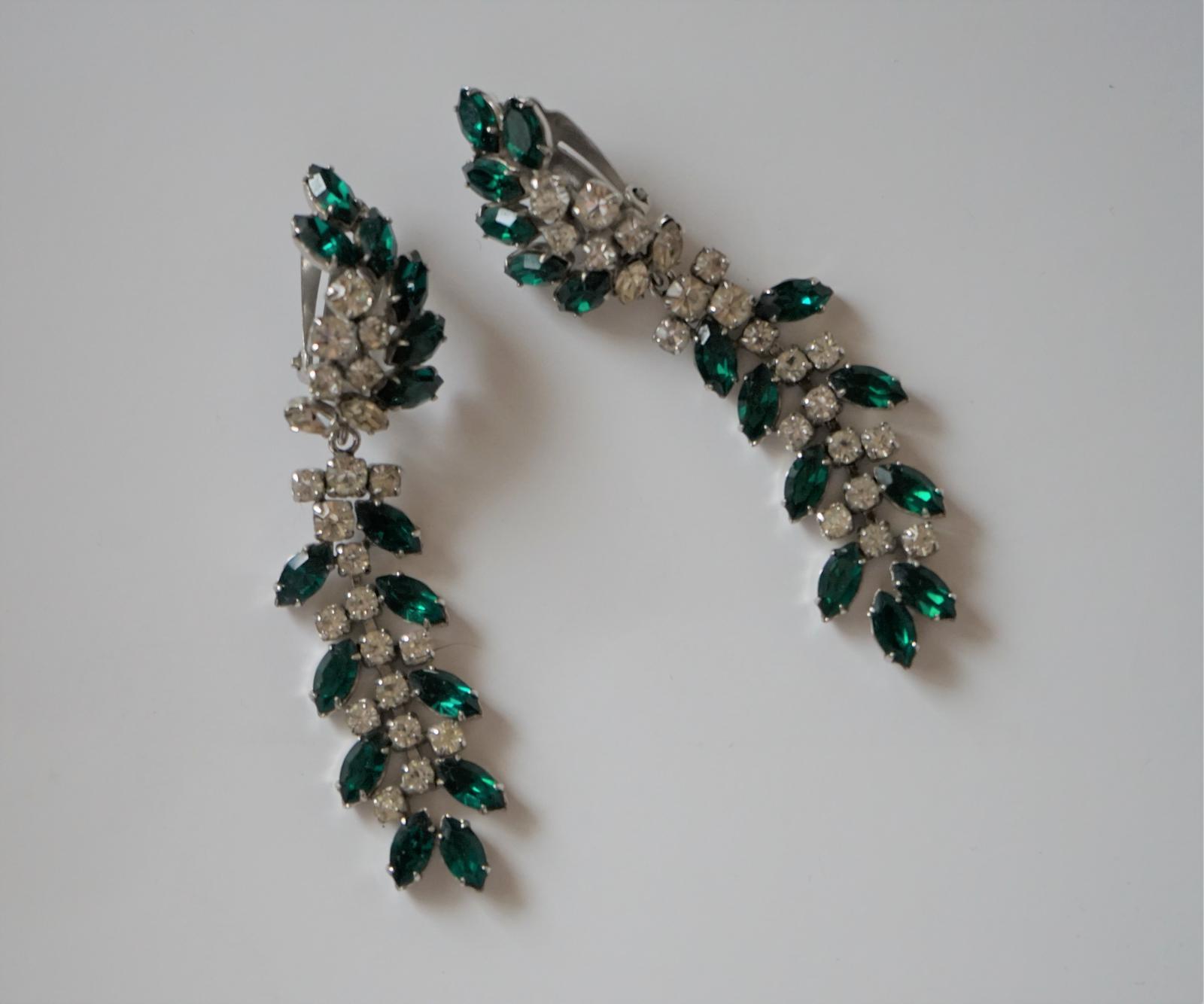 Stunning Vintage Pair of Emerald Green & Clear Rhinestone Clip on Earrings (1 of 6)