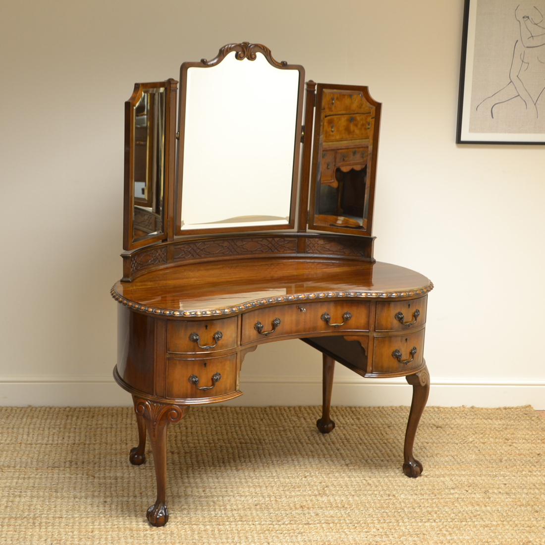 Stunning Waring & Gillow Kidney Shaped Antique Dressing Table
