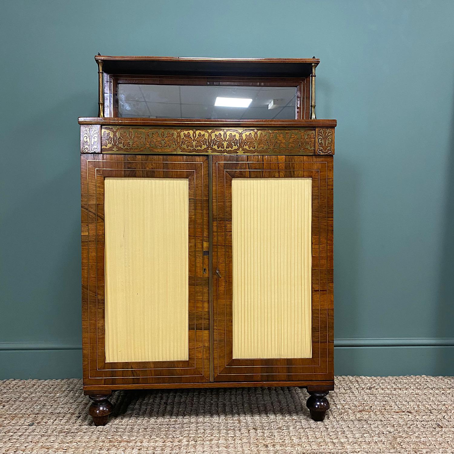 Stunning Warm Rosewood Antique Cabinet with Brass Inlay