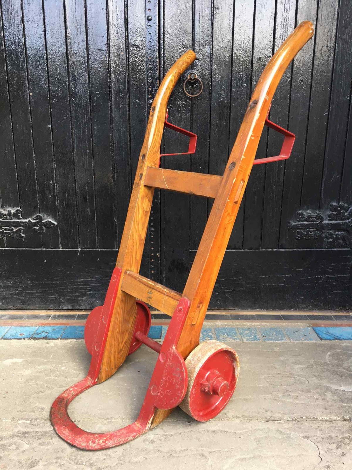 Sturdy Antique Wooden & Metal Sack Truck Trolley