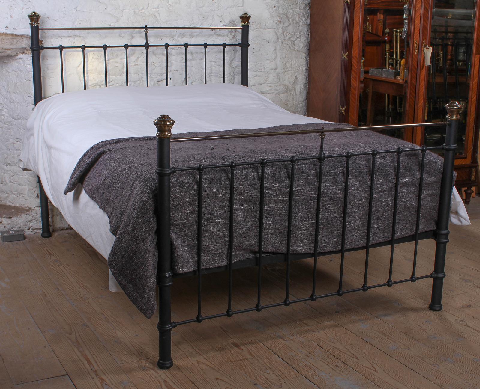 Sturdy Classic Edwardian Black & Original Brass King Size Bed