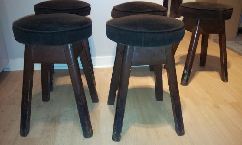 Sturdy Old / Vintage Kitchen Buffets / Stools with Upholstered Seats