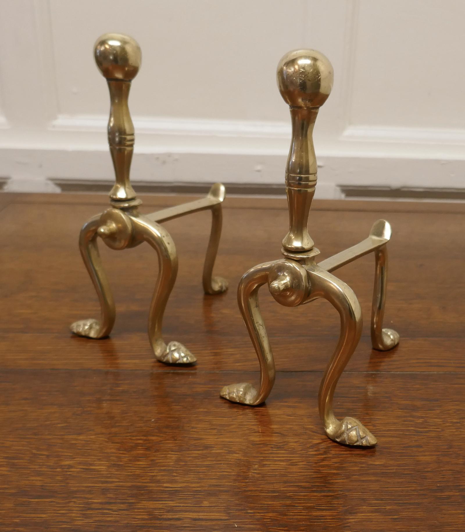 Sturdy Pair of Victorian Brass Andirons or Fire Dogs