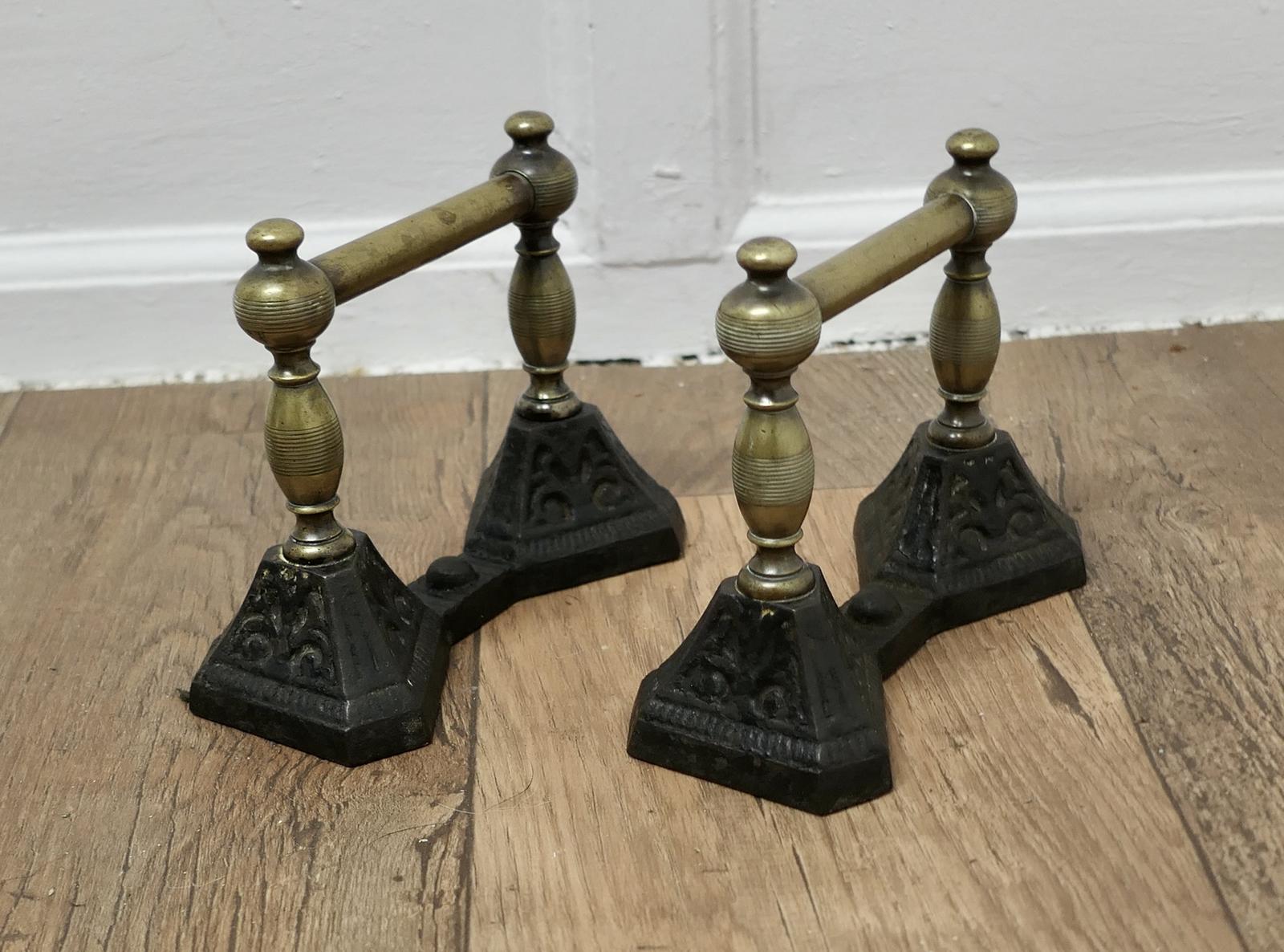 Sturdy Pair of Victorian Brass & Iron Andirons