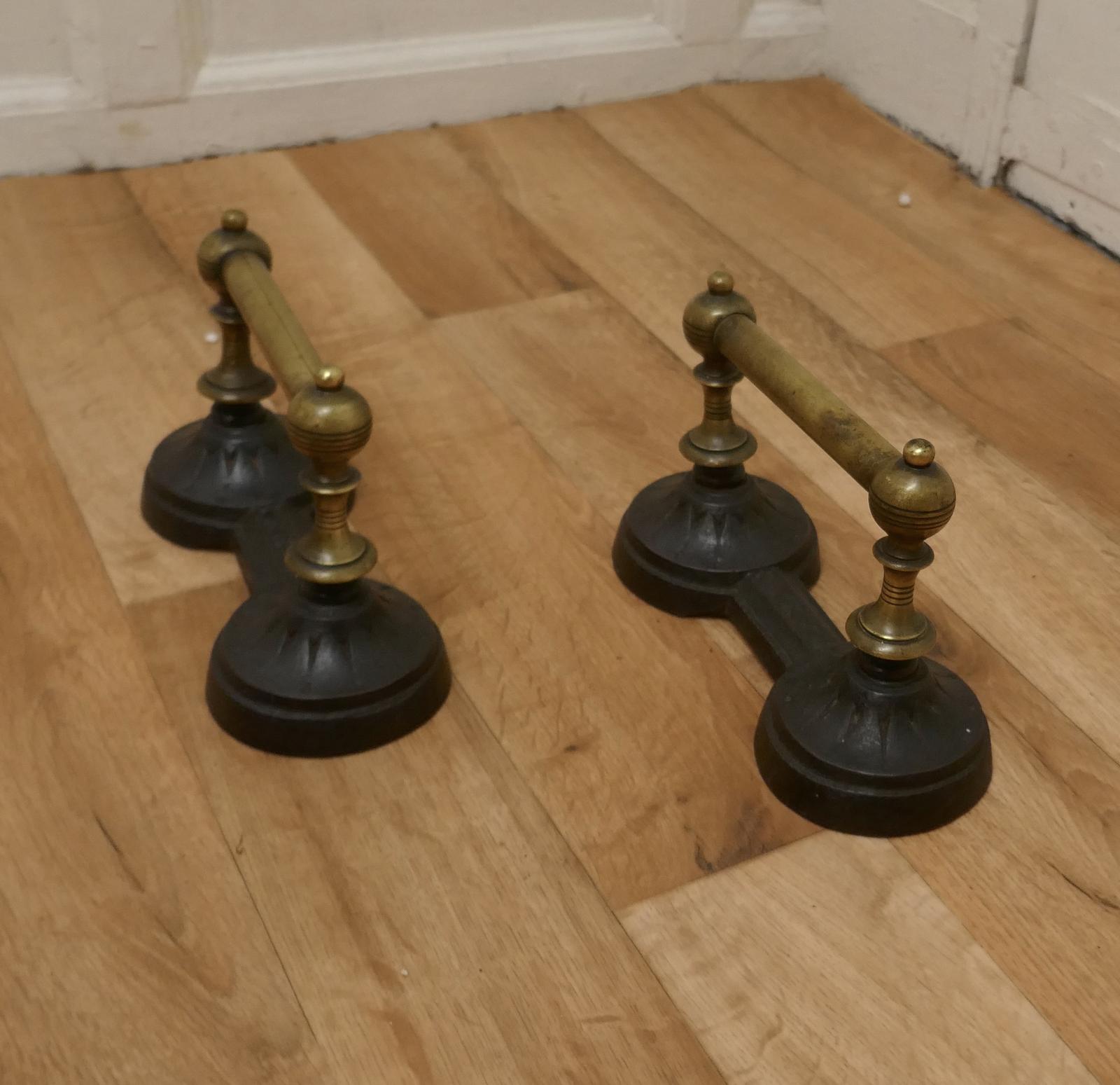 Sturdy Pair of Victorian Brass & Iron Andirons or Fire Dogs
