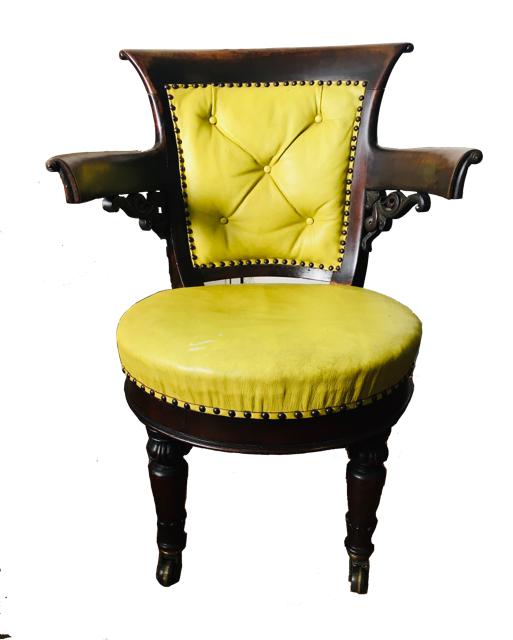 Stylish 19th Century American Mahogany Captains Chair in Pistachio Leather