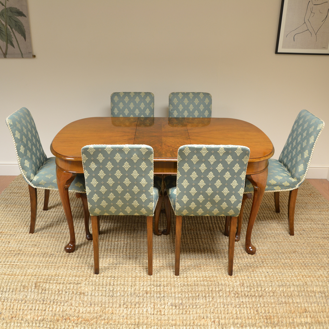 Stylish Art Deco Figured Walnut Table & Six Chairs