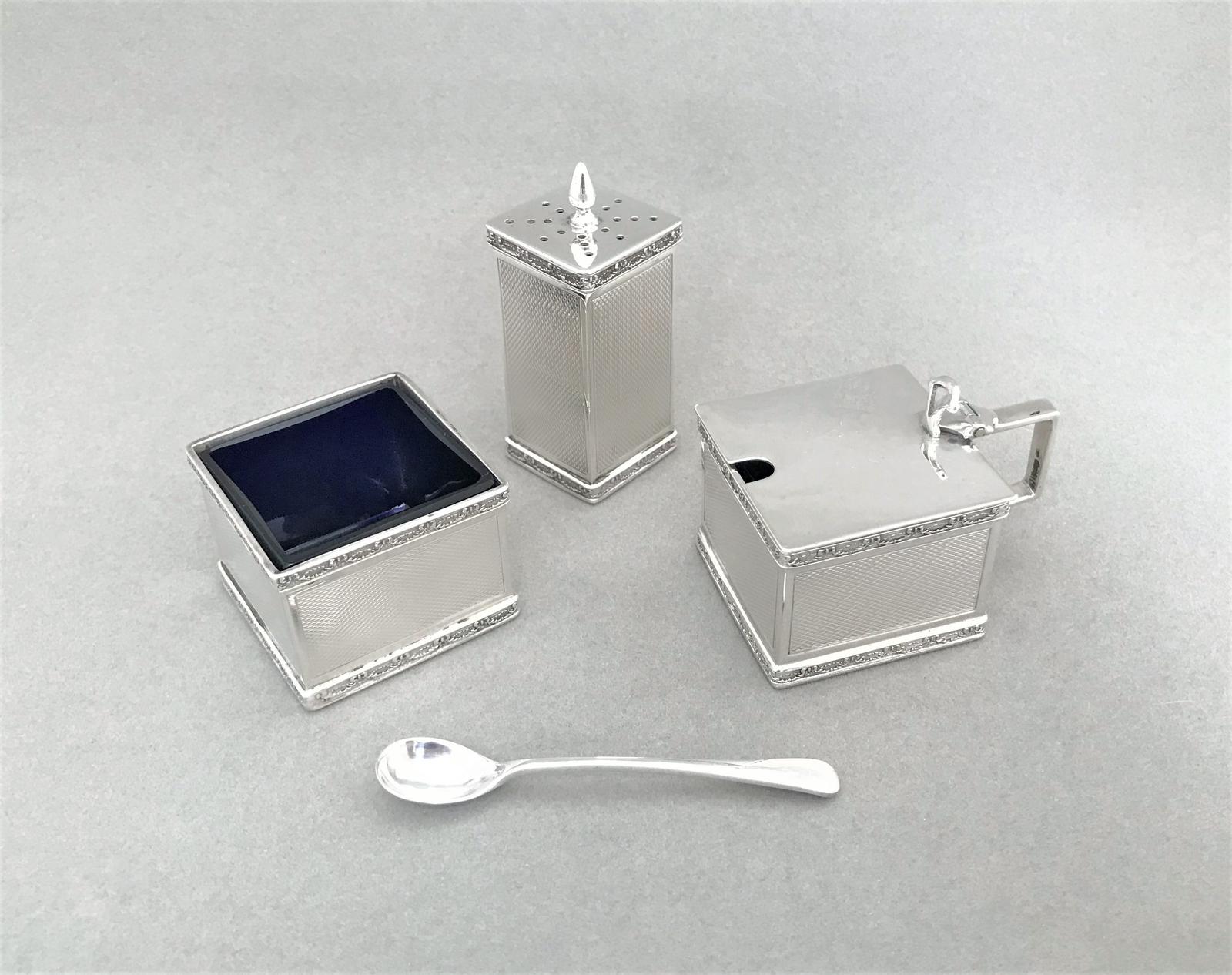 Stylish Art Deco Silver Three Piece Cruet