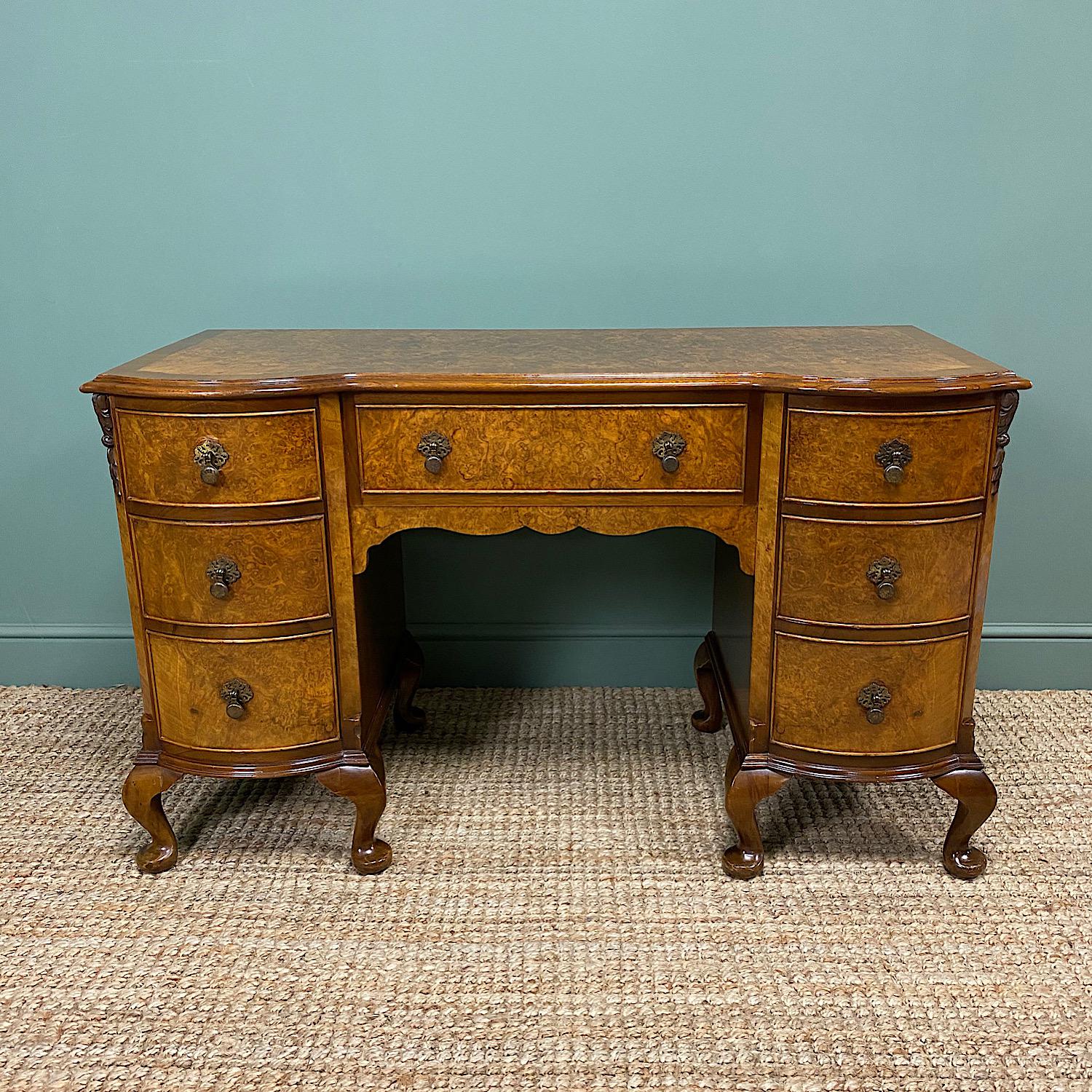 Stylish Art Deco Walnut Antique Pedestal Desk by Maple