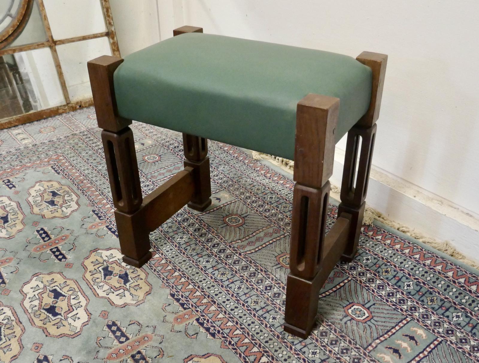 Stylish Arts and Crafts Oak and Leather Stool