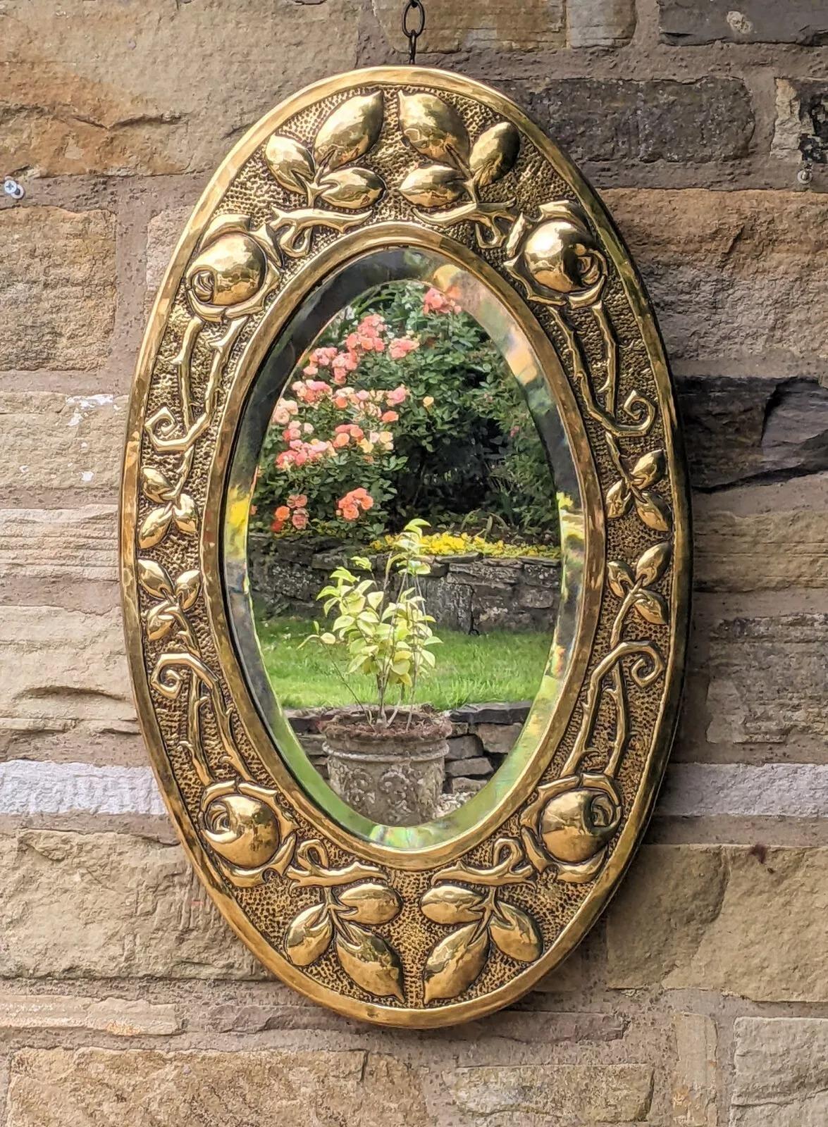 Stylish Arts & Crafts Oval Brass Framed Mirror (1 of 8)