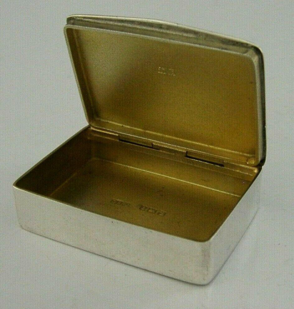 Stylish English Solid Sterling Silver Pill Snuff Box 1951 Engine Turned
