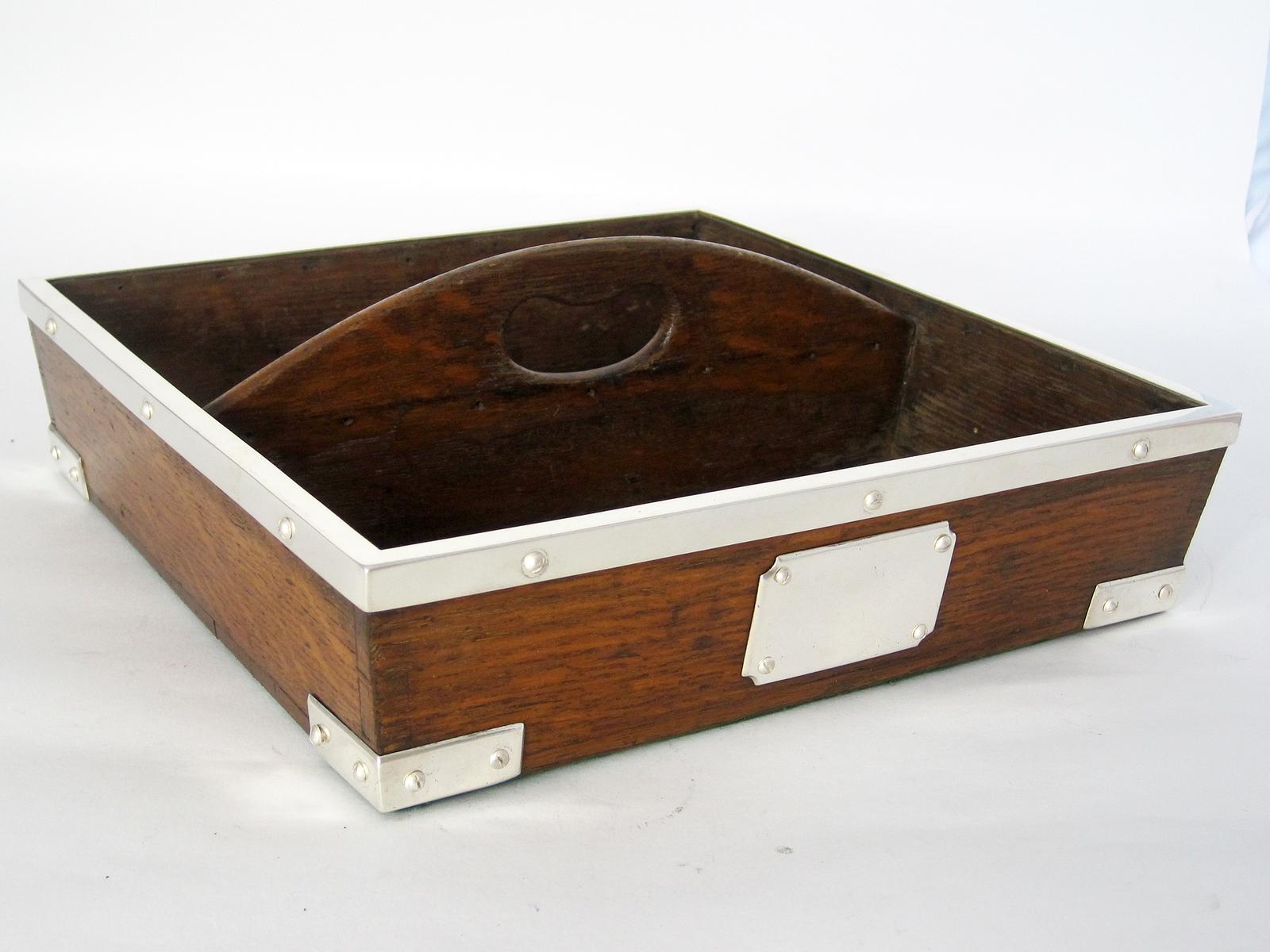 Stylish Oak & Silver Plated Square Cutlery Container (1 of 5)