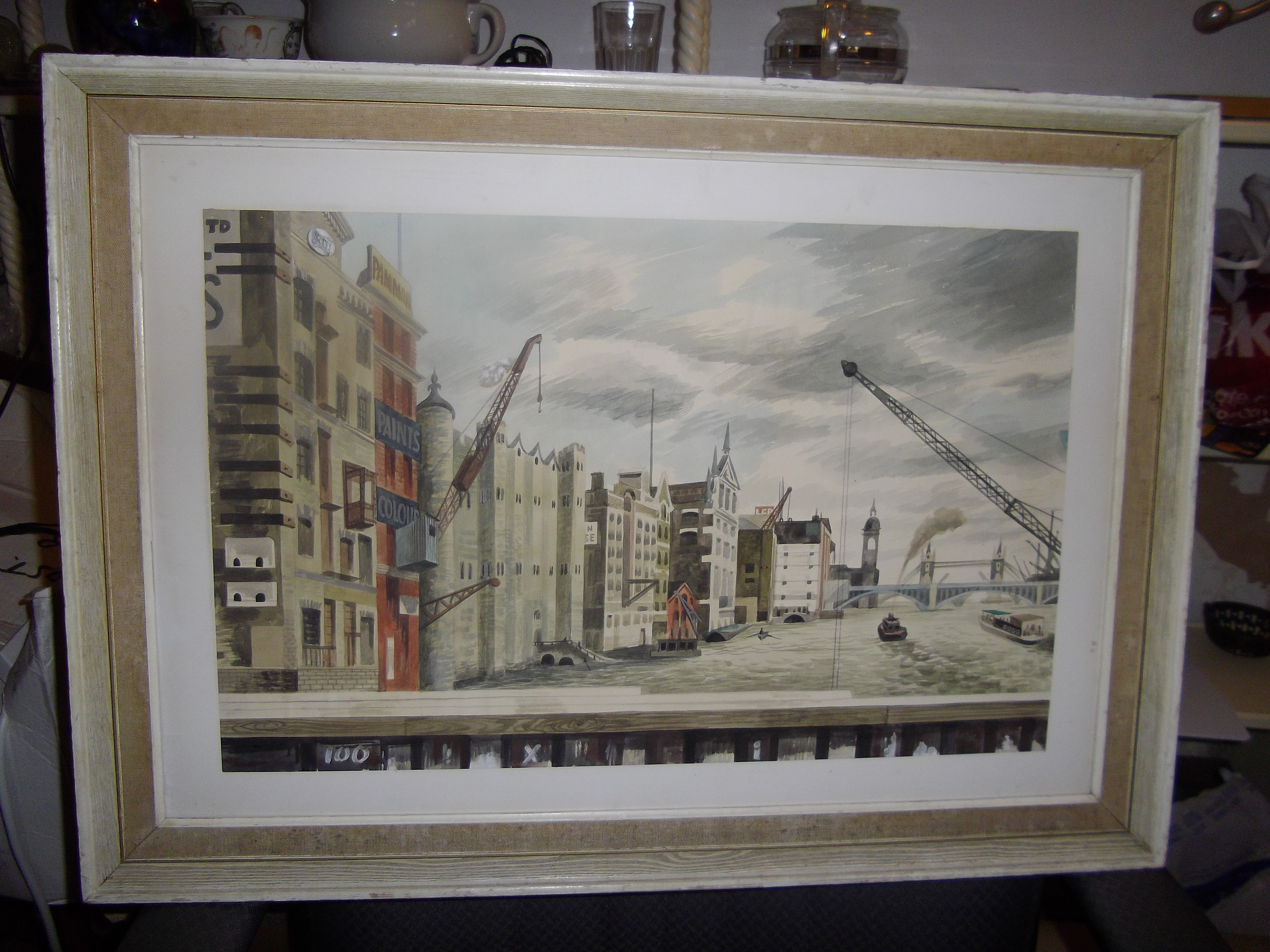 Stylish Original Watercolour of 'Pool of London' by Ravilious Bawden c.1930's / 1950's