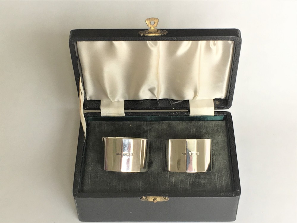 Stylish Pair of Boxed Silver Art Deco Napkin Rings (1 of 1)