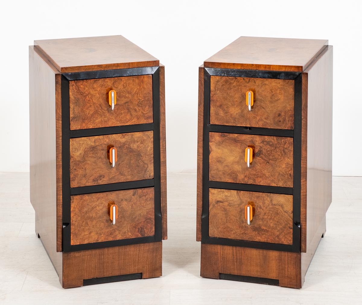 Stylish Pair of Burr Walnut Art Deco Bedside Cabinets