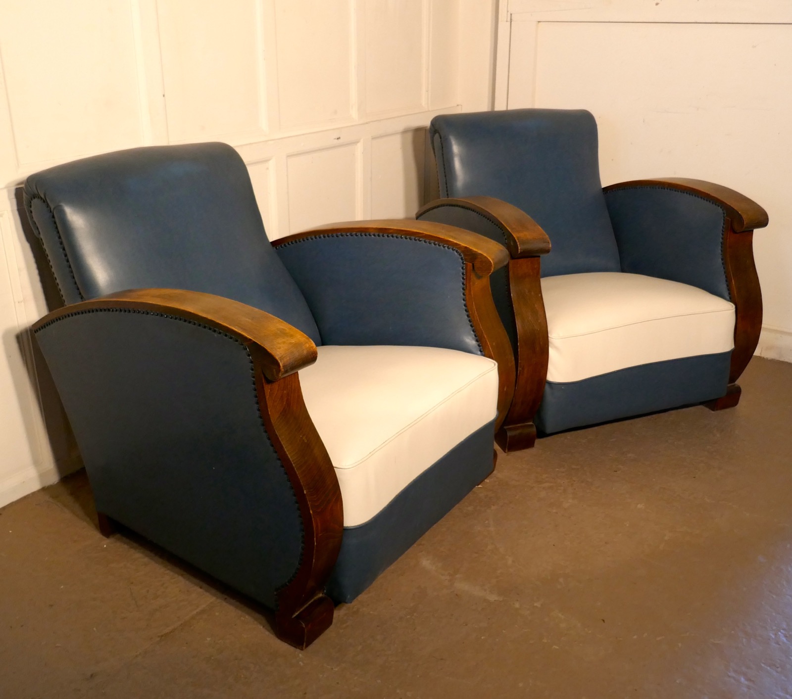 Stylish Pair of French Faux Leather Art Deco Club Chairs