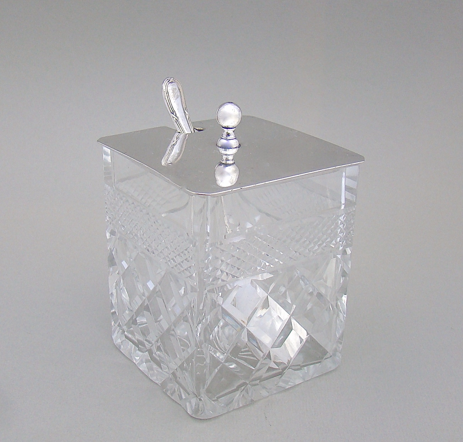 Stylish Silver Plated and Cut Glass Preserve Jar, circa 1910