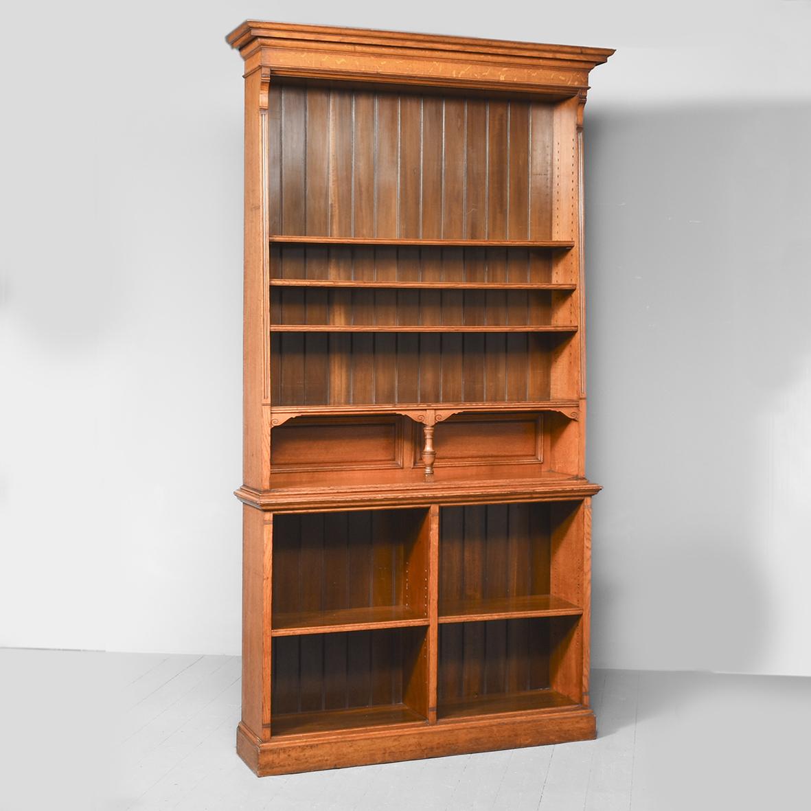 Stylish Two-part Oak Open Bookcase