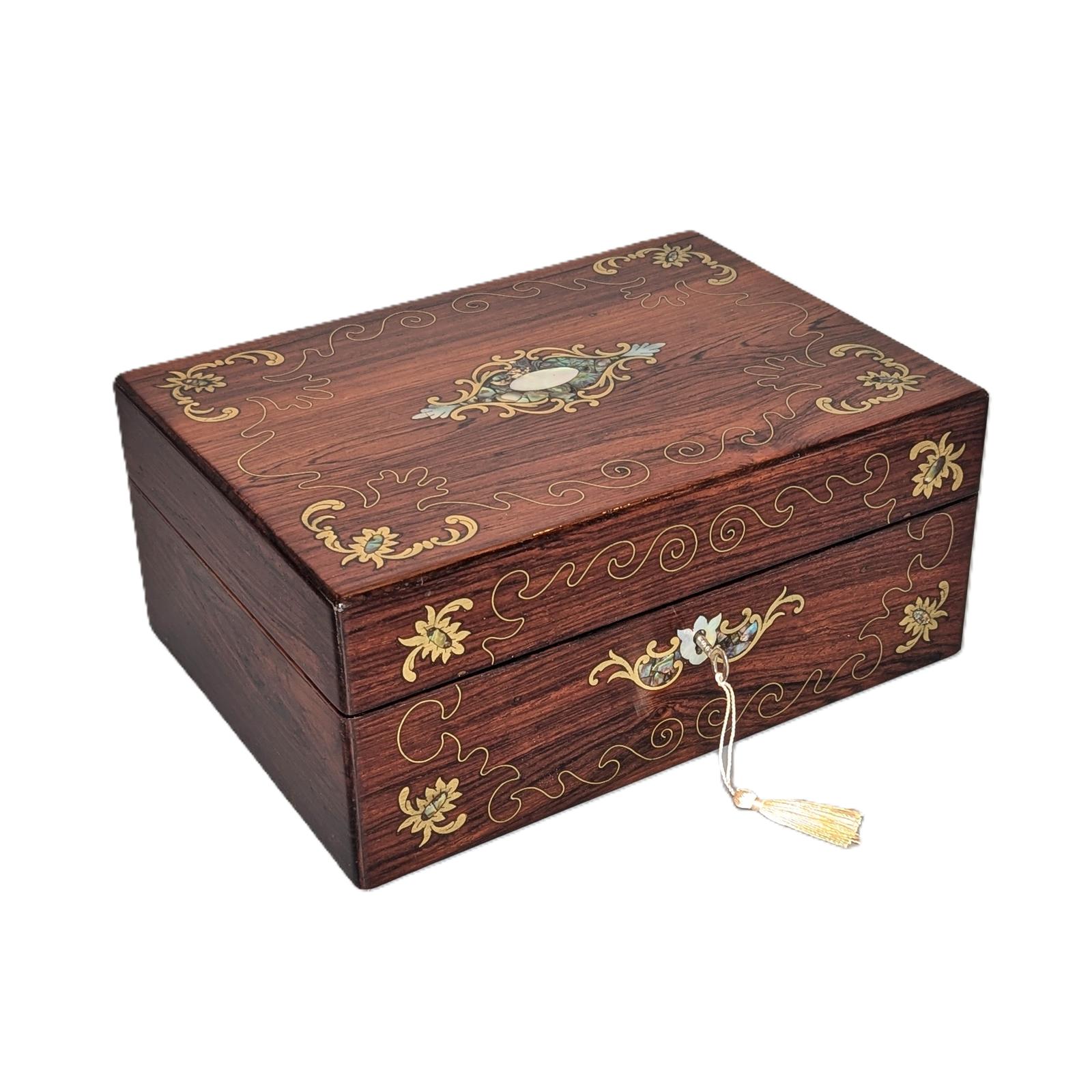 Stylish Victorian Rosewood Inlaid Jewellery Box