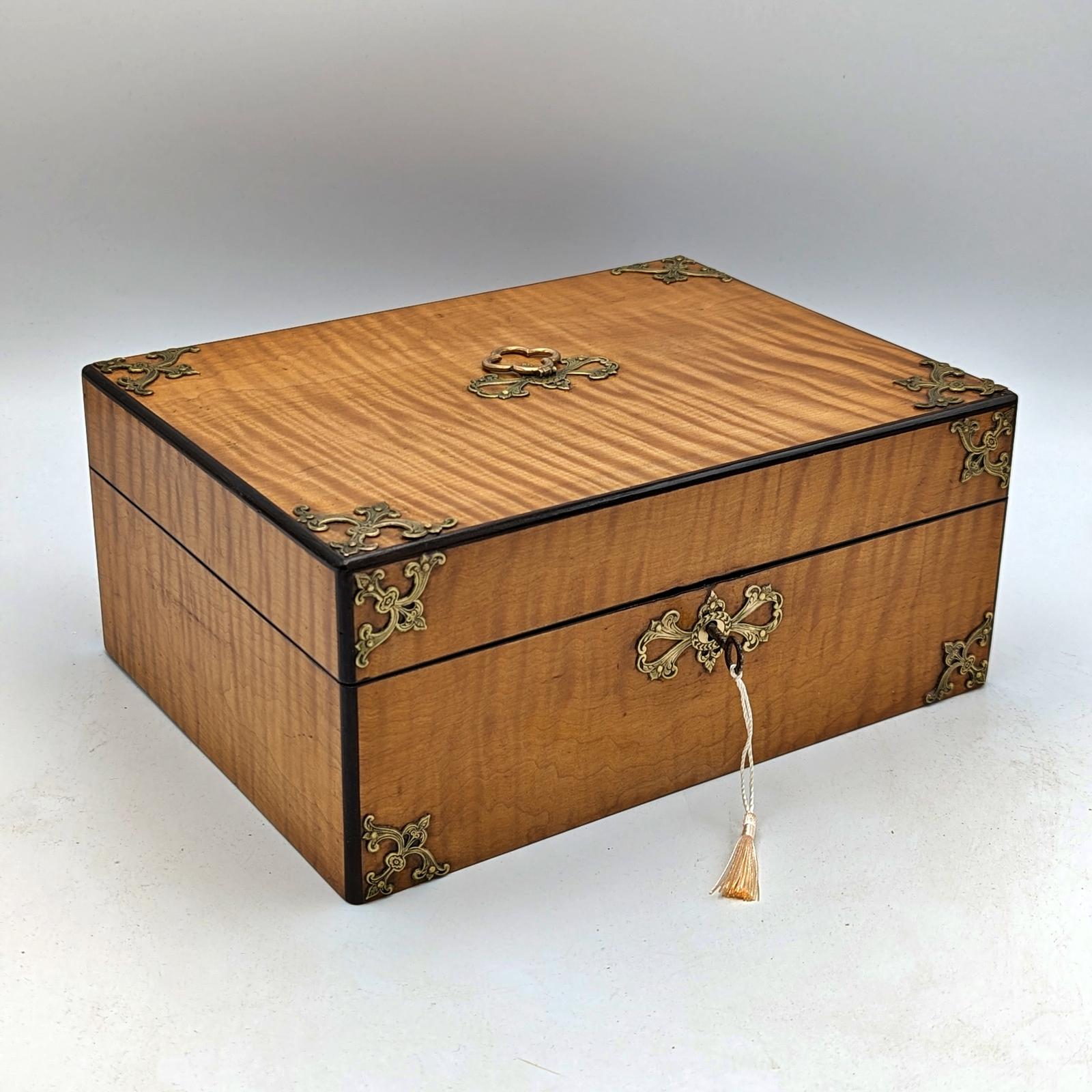 Stylish Victorian Sycamore & Brass Mounted Jewellery Box