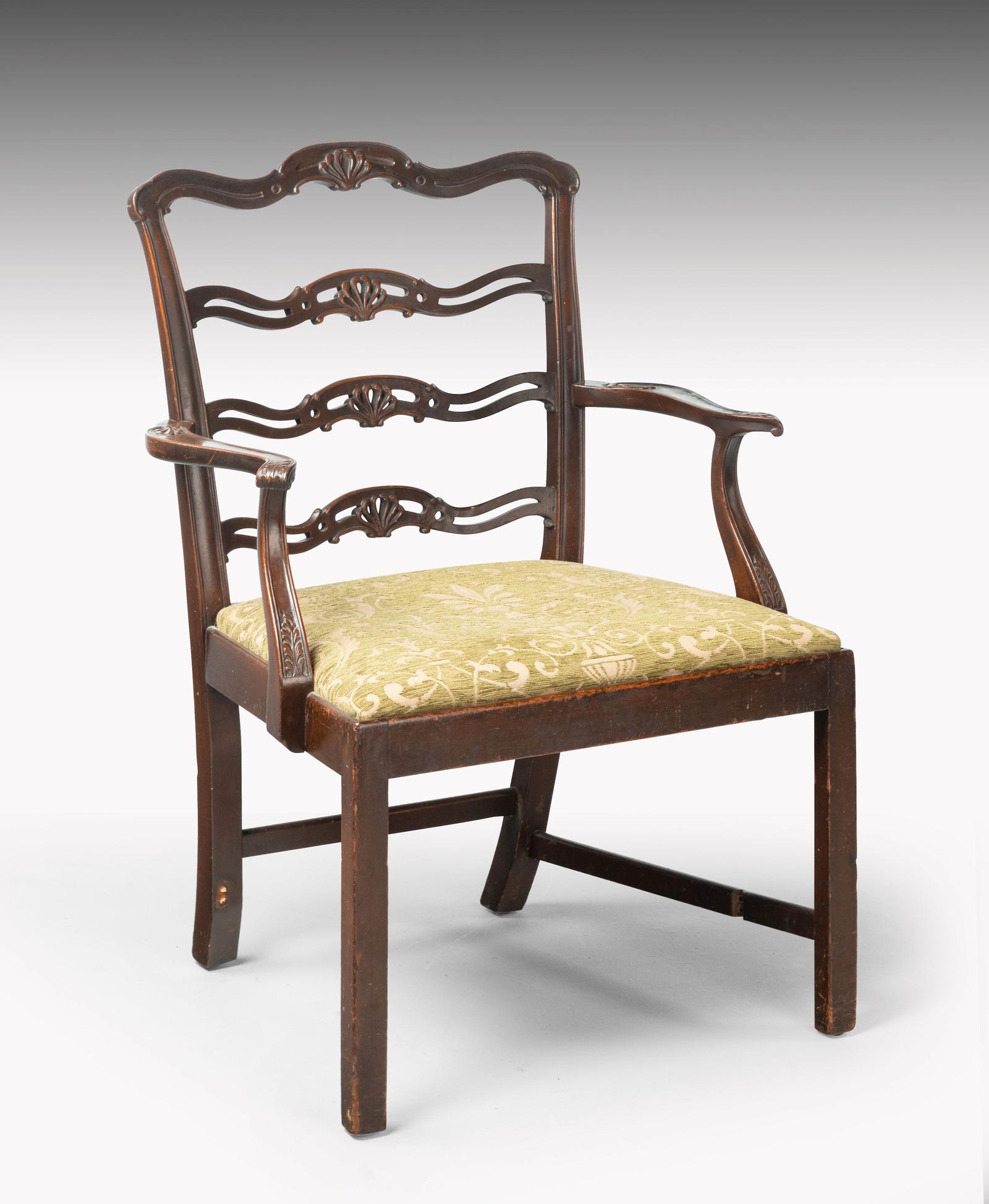 Substantial Early 20th Century Chippendale Style Ladderback Elbow Chair