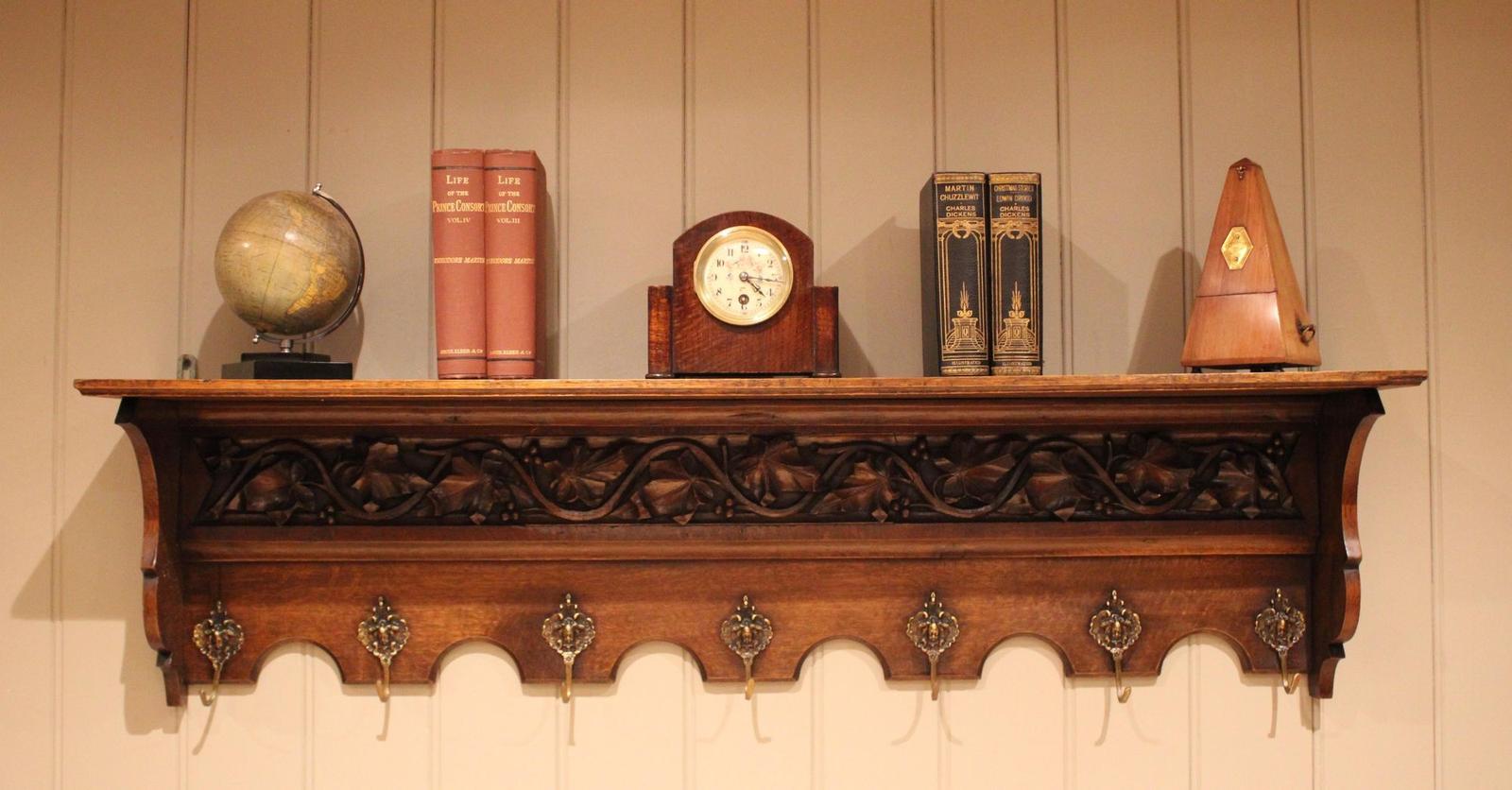Substantial French Oak Wall Shelf with Coat Hooks (1 of 11)